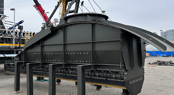 在港口中,堆焊耐磨板可以用于各種裝卸設備和場地,特別是鐵礦石、煤炭等散貨裝卸系統中,抓斗、料斗、熘槽、落煤管、下料管、堆取料機等部件
