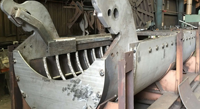 高爐布料熘槽失效的主要因素有:1.料流高落差的沖擊損壞;2.物料對襯板的滑移磨損;3.外殼的燒損與汽蝕;4.由于熱應力導致的焊縫開裂、螺栓剪斷、基體撕裂等。